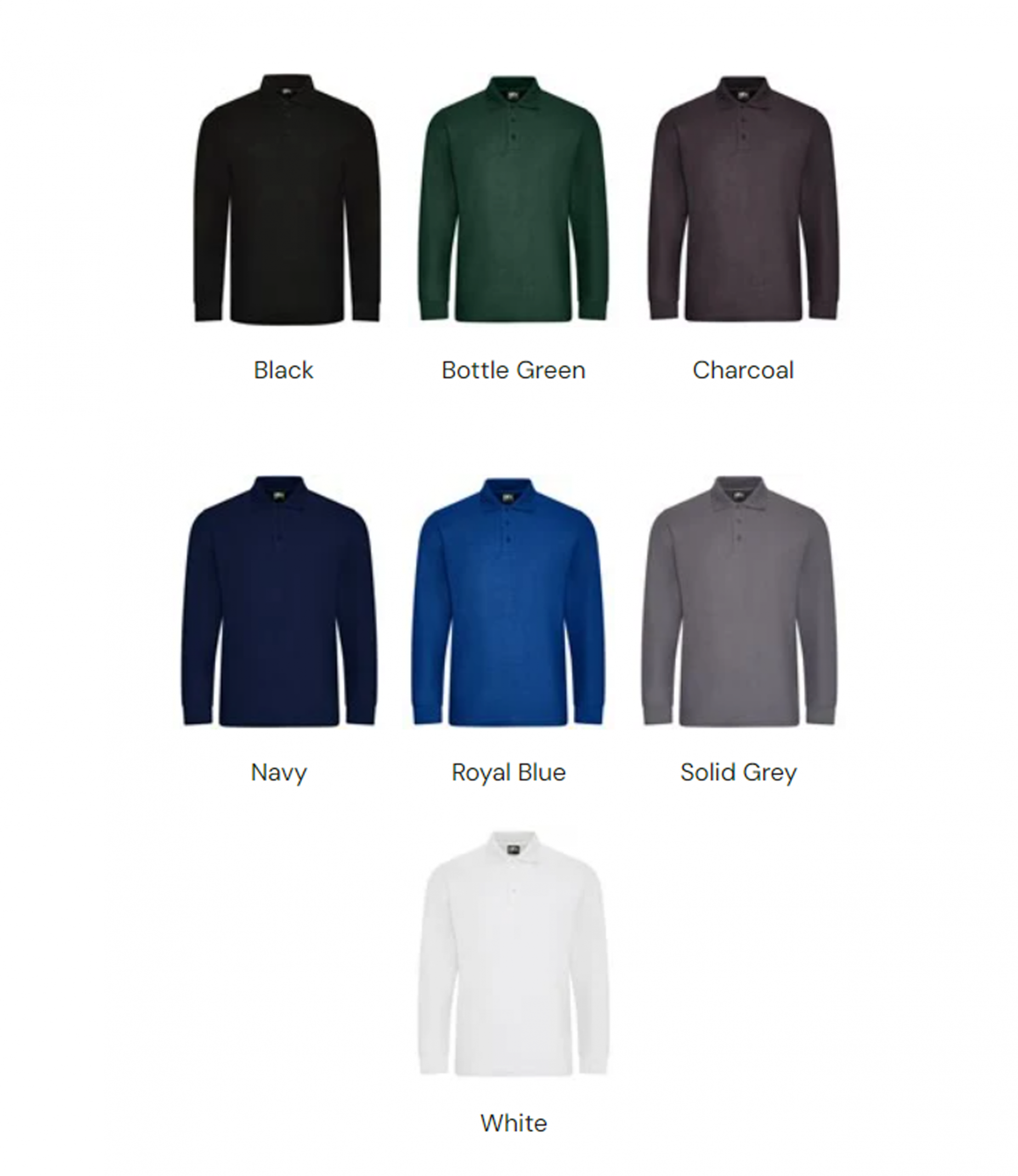 Black, Bottle Green, Charcoal, Navy, Royal Blue, Solid Grey, White