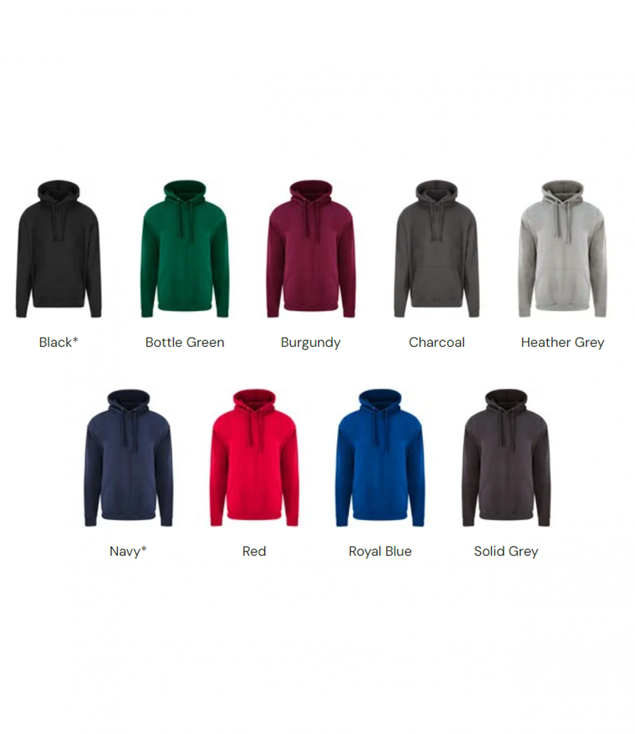 Black, Navy, Royal Blue, Bottle Green, Solid Grey, Charcoal, Heather Grey, Red, Burgundy